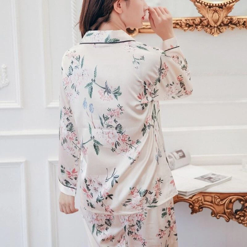 La beauté de ce blanc satiné agrémenté de jolies fleurs est au top de la tendance. Bien plus qu’un pyjama, vous pourrez cocooner toute la journée grâce à cette coupe chemise et pantalon à la matière douce et légère.